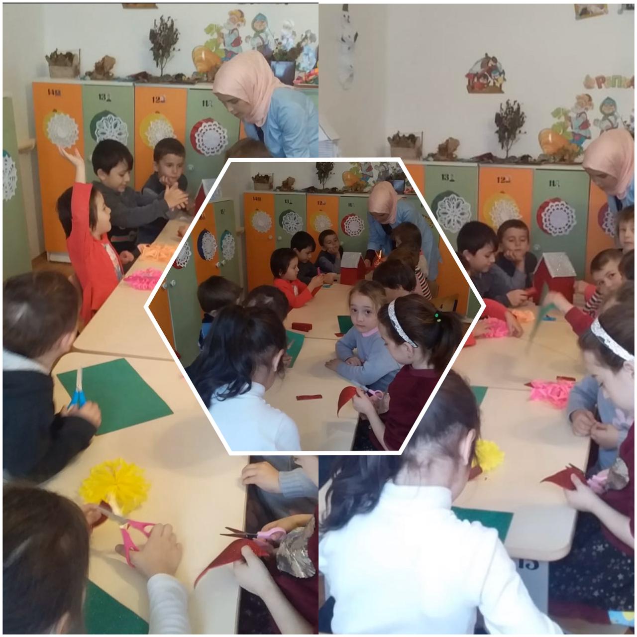 16.12.2019С целью формирования умения создавать зимний пейзаж из салфеток и с помощью техники обрывной аппликации в разновозрастной группе «Звездочки» прошло занятие на тему «Зимушка-зима»