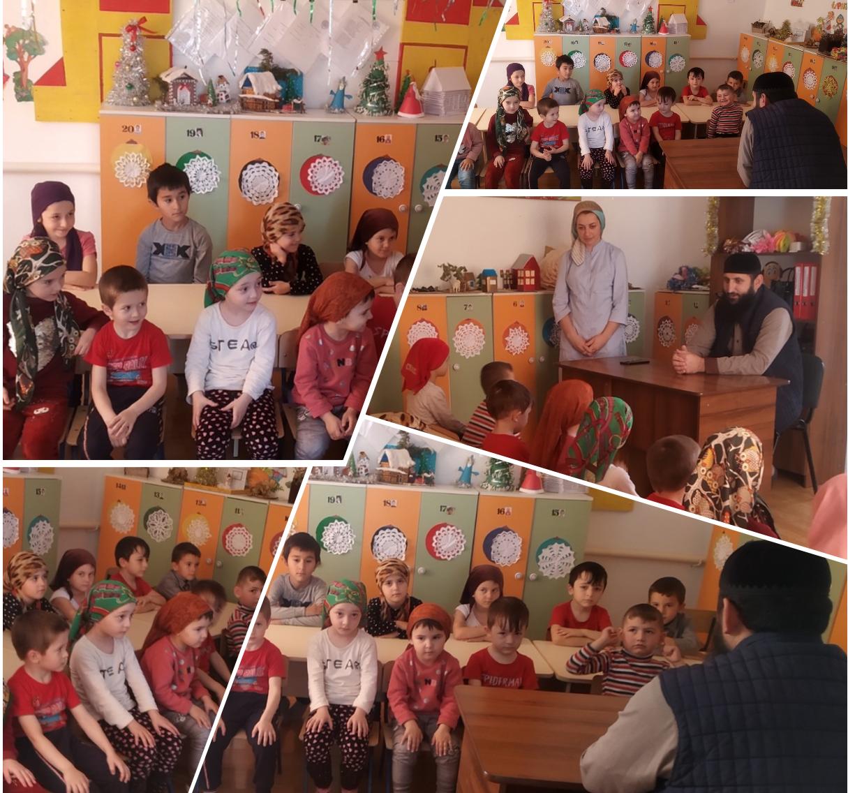 17.12.2019В рамках реализации Единой концепции духовно-нравственного воспитания и развития подрастающего поколения в ДОУ имам села Даттах Гиргиев В.М. прочитал проповедь о жизни и деятельности Эвлия Кунта-Хаджи Кишиева (да будет возвышена его святость)