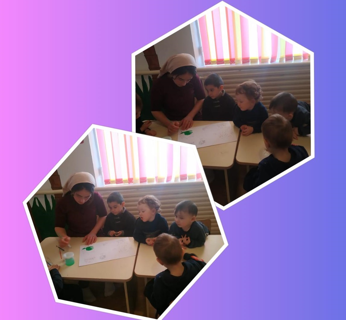 С целью закрепить знания, которые характеризуют зиму, в разновозрастной группе «Ангелочки» дошколята совместно с воспитателем рисовали зимний пейзаж.