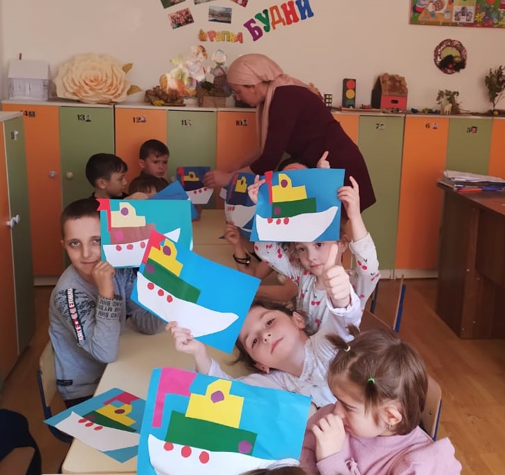 Воспитанники разновозрастной группы «Звездочки» сегодня создавали аппликации «Пароход» Создавая образ парохода, дети упражнялись в вырезании прямоугольных, квадратных, а также круглых деталей.