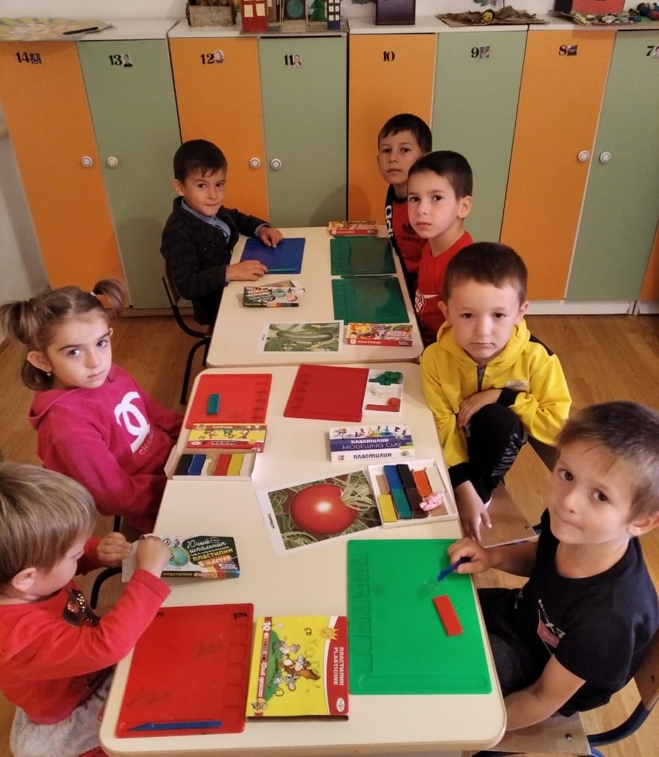 Цель: закреплять умение детей передавать в лепке форму разных овощей, учить находить сходство и различия, учить передавать в лепке характерные особенности каждого овоща, пользуясь приемами раскатывания, сглаживания пальцами, прищипывания и оттягивания.