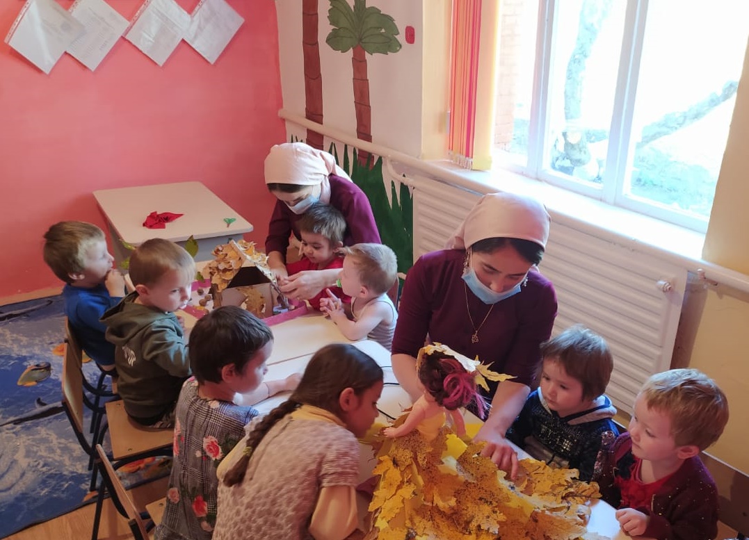 Наши самые маленькие дошколята разновозрастной группы «Ангелочки» готовятся к выставке «Дары осени»