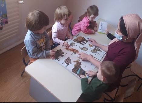 Цель: научить устанавливать простейшие связи между сезонными изменениями в природе и поведением животных, узнавать и называть их детёнышей.
