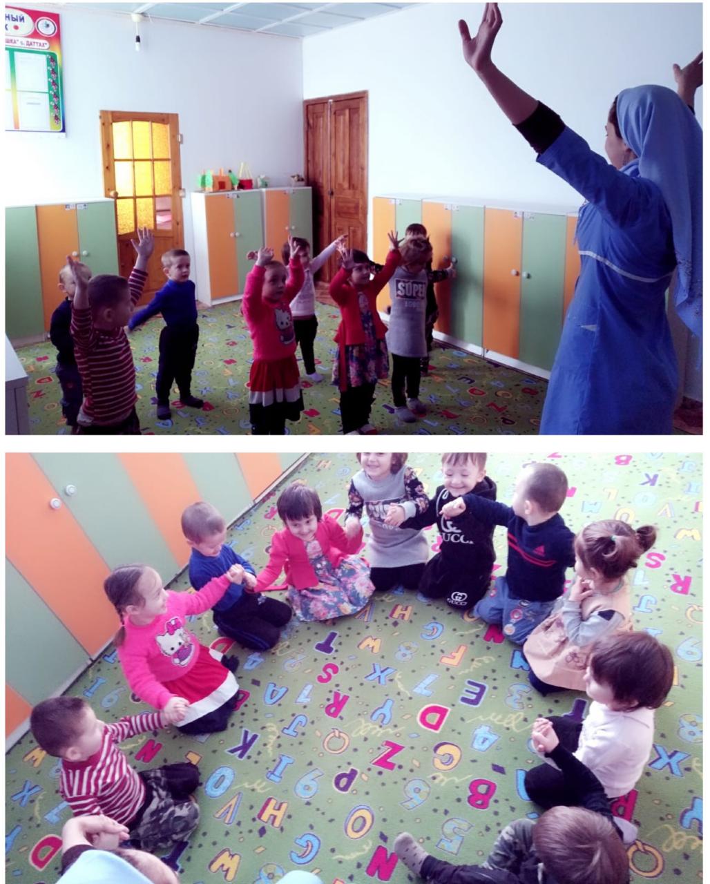 Утренняя гинастика разновозрастной группы "Ангелочки" c воспитателем Р.И. Джабраиловой.